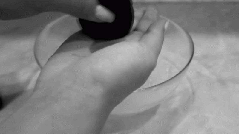 - Изначально спонж нужно хорошо намочить под струей воды, а после чего отжать. Если воду отжать плохо, то при нанесении тонального средства на кожу ничего хорошо не получится. Тон будет ложиться неравномерно и на лице будут мокрые пятна. Чтобы этого не произошло, нужно хорошо отжать всю жидкость. Можно воспользоваться сухим бумажным полотенцем. Оно впитает всю лишнюю воду и бьюти-блендер будет идеально влажным. Чем менее влажным будет спонж, тем плотнее получится покрытие. Так, с помощью отжатия воды можно регулировать плотность тона.