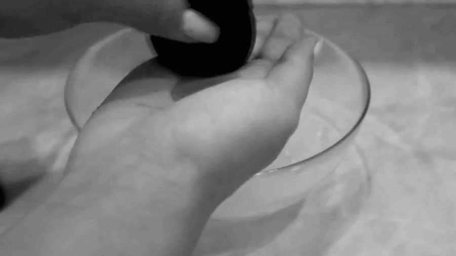 Аккуратно сжимай и разжимай спонж в руке. Это может занять несколько минут.
