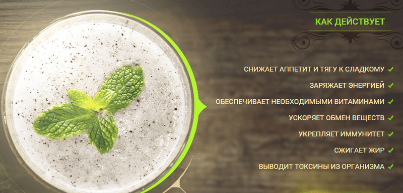 Напиток представлен в двух видах: для дневного употребления и для питья перед сном. Перечень компонентов очень обширен, но главное — это то, что все они рассчитаны на снижение веса и контроль над аппетитом.