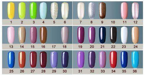 Производитель позаботился о модницах и выпустил разнообразную палитру таких лаков. Можно выбрать как нежные мерцающие тона, так и насыщенные блестящие оттенки. Особенно эффектно подобные продукты нейл-индустрии будут выглядеть при вечернем освещении. Все гелевые лаки, входящие в коллекцию, выпускаются во флакончиках объемом 7,5 мл. Этого хватит примерно на 8 полноценных прокрашиваний. Срок годности представленных косметических продуктов составляет 2,5 года.