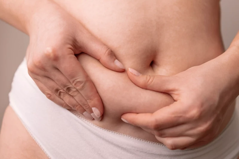 С возрастом, после климакса, при снижении уровня выработки эстрогенов, у женщин начинается накопление жира и в области торса, и живота. Жировая ткань в передней брюшной стенке разрастается в подкожной клетчатке, прямо перед мышцами.