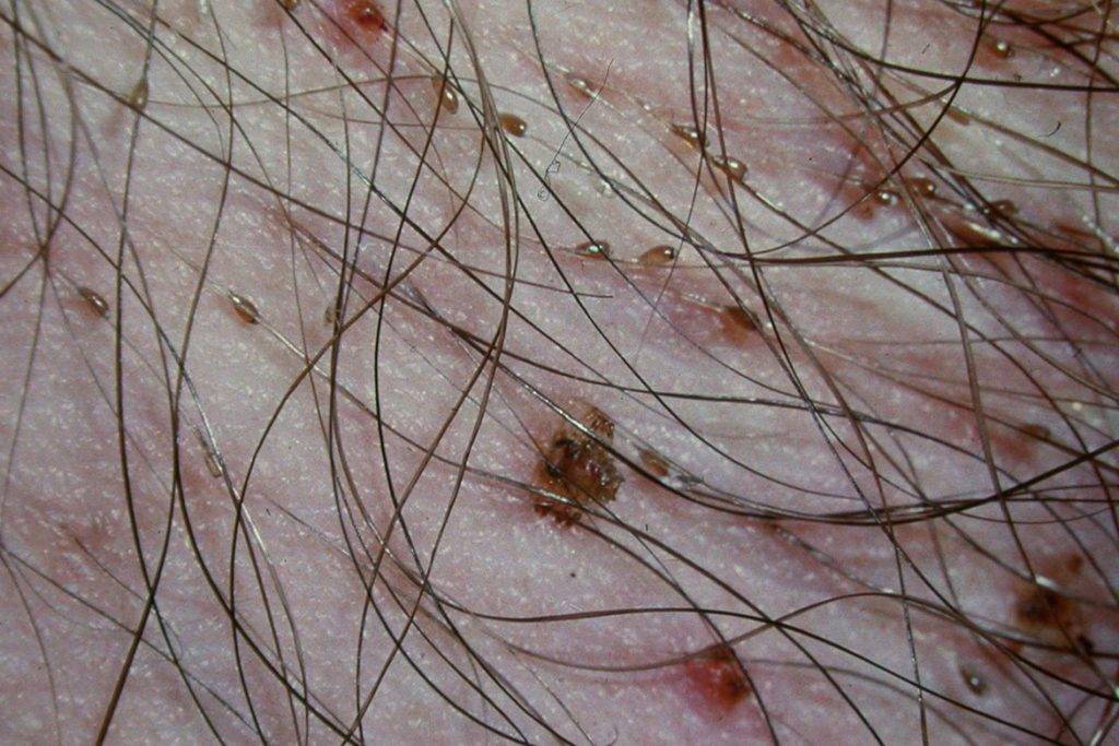 Признаками поражения платяными вшами являются укусы по всему телу в виде скопления красных точек, сильный зуд при соприкосновении с одеждой или бельем, где живут насекомые.