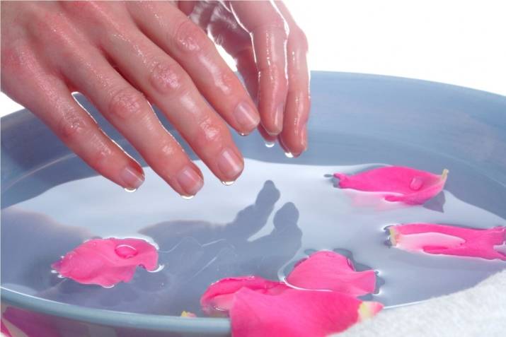 Целебным эффектом обладают ванночки с добавлением эфирных масел. Особенно хорошо действуют шалфей и ромашка. Ногти погружаются в воду с добавлением эфирных масел на 15-20 минут, после этого их не стоит промывать. Достаточно просто промокнуть полотенцем и смазать восстанавливающим кремом.