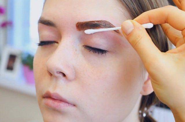 - Вокруг бровей нанести крем, чтобы избежать возможного окрашивания кожи.