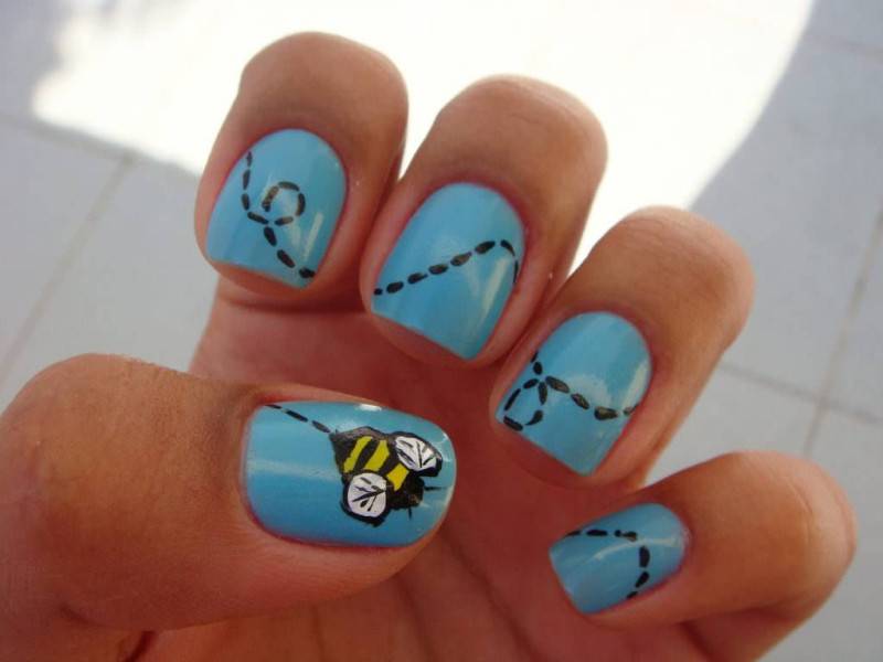 Как и в предыдущих способах декорирования, на ногти нужно нанести основной цвет, а уже после его полного высыхания наносить рисунок. Маникюр будет служить дольше, если покрыть полученный результат закрепителем.