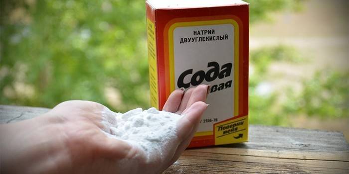 В пяти литрах разогретой примерно до 38-42 градусов воды тщательно растворяют до исчезновения частиц столовую ложку гидрокарбоната натрия.