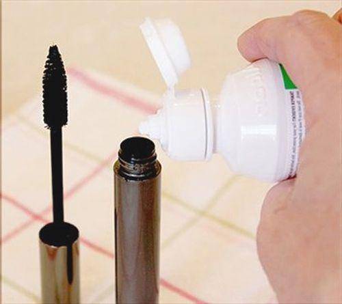 Сомнительный способ реанимации туши для ресниц — это использование раствора для контактных линз. Большинство из современных продуктов универсальны и содержат увлажнители, очистители и смазывающие компоненты. Последние 2 вызывают опасения. Энзимы нужны для того, чтобы снять с линз белковые отложения, при контакте с глазами они смываются слезой, а при контакте с ресницами — разъедают их белковую составляющую. Смазка безопасна и гипоаллергенна, но может скорректировать масляный баланс туши не в нужную сторону.