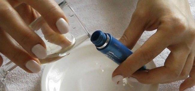 - Добавляют во флакон пару капель жидкости для снятия водостойкого макияжа.
