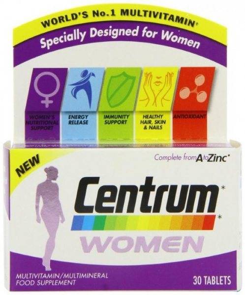 Такие витамины, как «Центрум», предназначенные для женщин, включают двадцать четыре витаминных и минеральных частицы. Как их пить указывают инструктивные рекомендации или специалист во время проведения консультации. Для женщин, достигших пятидесятилетнего возраста, предназначено средство «Центрум Сильвер 50+», которое позволяет сохранять молодость и наполняет стареющий организм дополнительной энергией, необходимой для организации досуга в пенсионном периоде.
