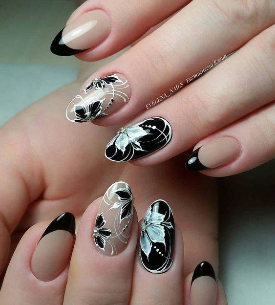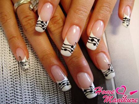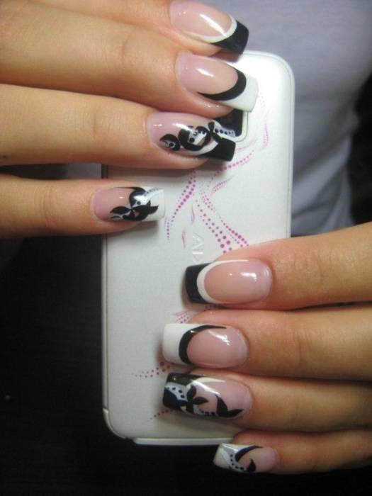 На самом деле идей для нейл-арта в черно-белом цвете существует очень много. Ведь это может быть даже классический френч с рисунком, для выполнения которого использовался черный цвет. А что именно вы нарисуете, будет зависеть от вашей фантазии.