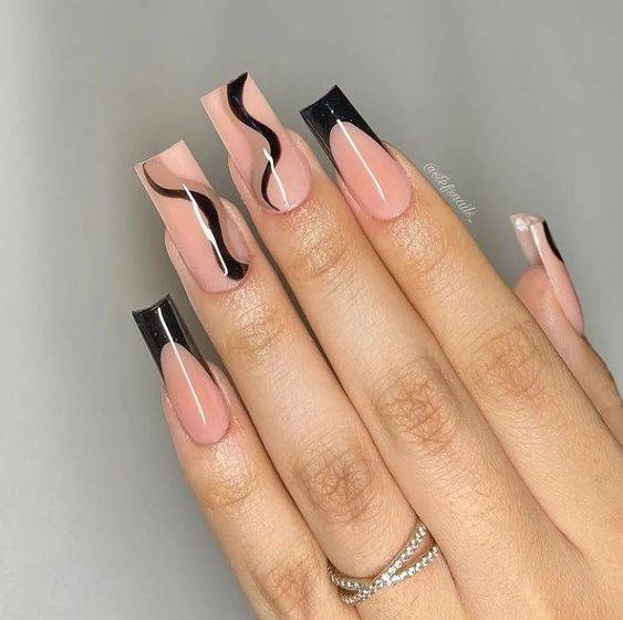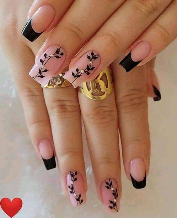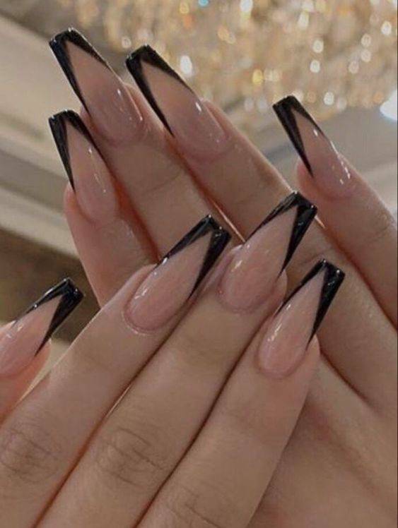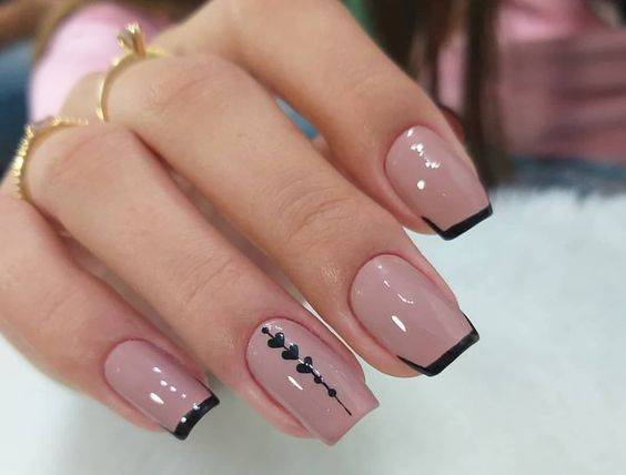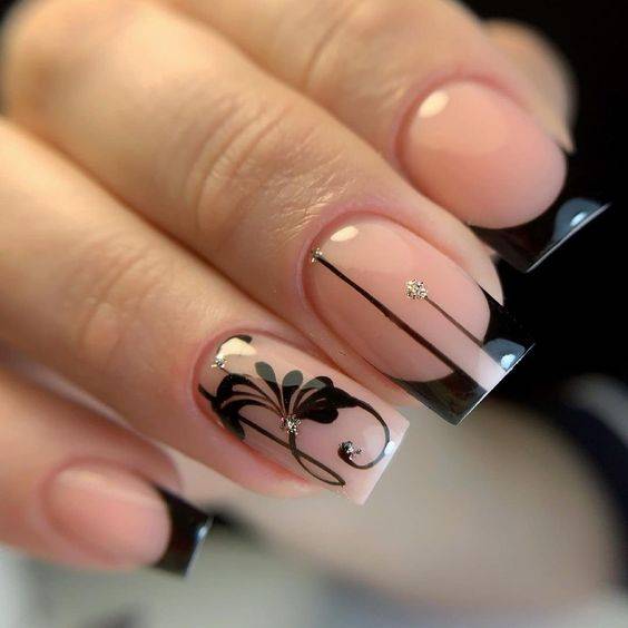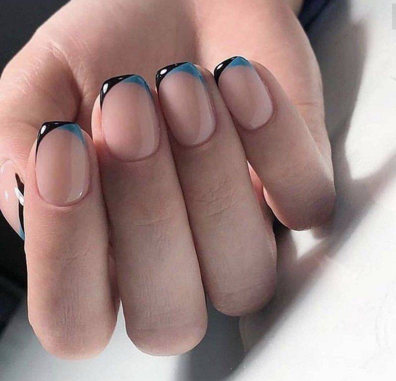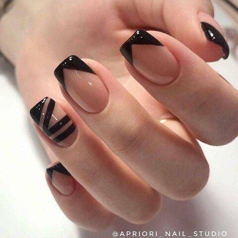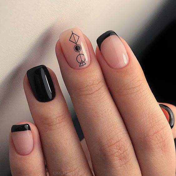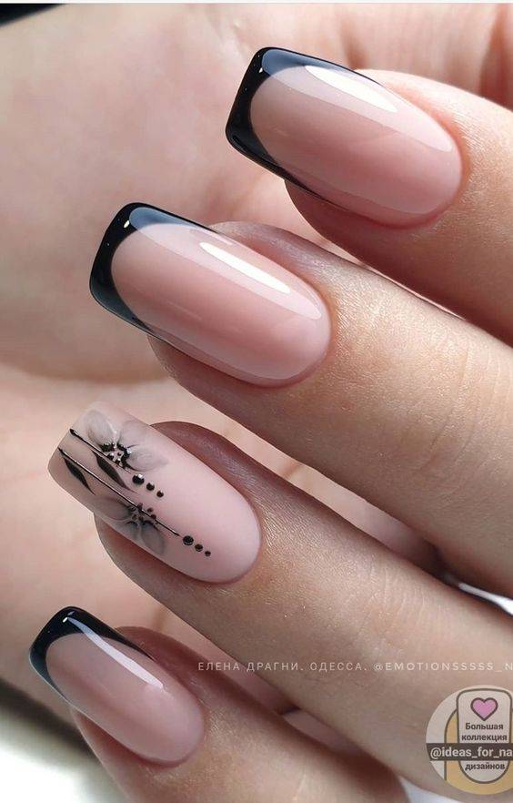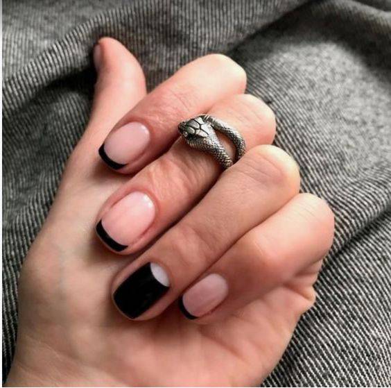 Черный френч на коротких квадратных и овальных ногтях: идеи 2023-2024