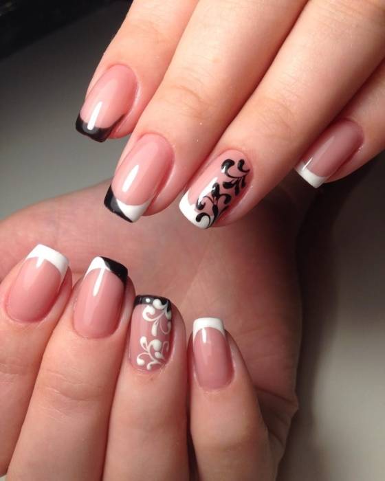 Данный маникюр можно смело использовать для мероприятия любой тематики, а также повседневного дизайна ногтей. Он смотрится достаточно скромно, строго и сдержанно. Если хочется разбавить умеренный черно-белый френч, можно использовать множество методов, но самый привлекательный и шикарный из них – это рисунок
