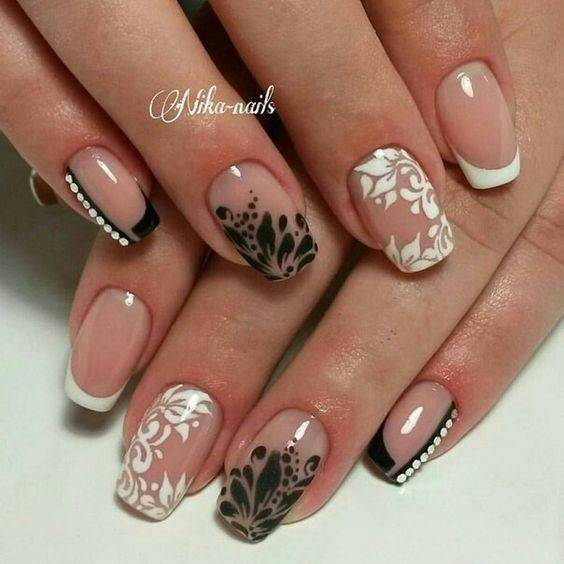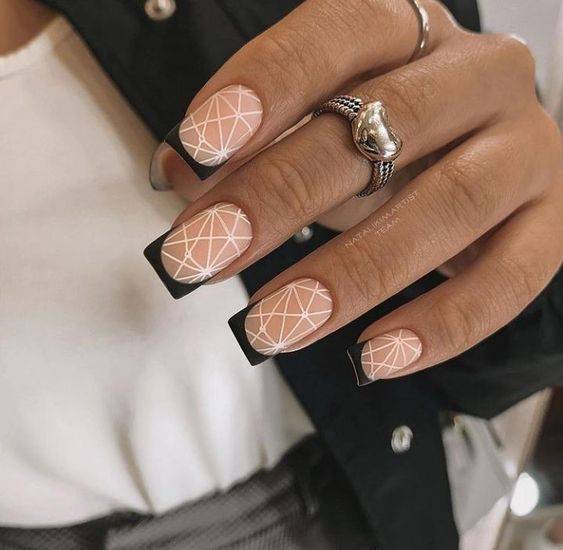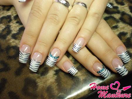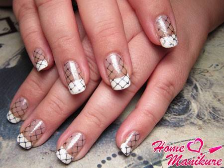 Возможно, вы захотите сделать себе очень нежный и воздушный маникюр. Просто украсьте классический френч легкой паутинкой или сеткой. Воздушная черно-белая композиция добавит образу немного таинственности. Если у вас квадратные ногти, попробуйте поэкспериментировать с различными линиями. Полоски могут быть прямыми или волнистыми, вертикальными или горизонтальными. Черно-белый принт, повторяющий дизайн ногтей в стиле зебры, не останется незамеченным. Насладитесь просмотром интересных идей на фото, каждая из которых может быть реализована вами.
