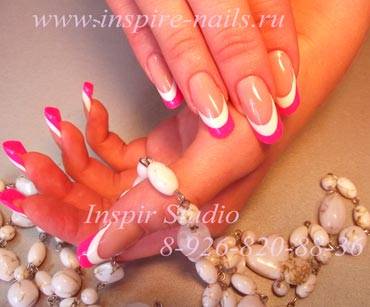 Французский маникюр смотрится очень красиво и сдержанно не только на нарощенных, но и на натуральных ногтях. Как правило, френч нравится девушкам, которые любят во всем классику и спокойствие. Но следует сказать, что в дизайне французском маникюре, помимо спокойных оттенков свободного края ногтя, есть красочные и оригинальные варианты. Итак, существует несколько вариаций французского маникюра: декоративный френч, классический френч, твист-френч, френч-миллениум, стилизованный френч, фан-френч и др. Данные виды френча чаще всего применяются для моделирования нарощенной ногтевой пластины.