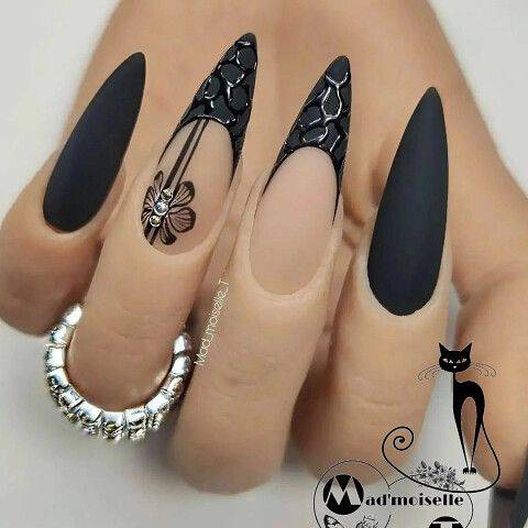 - чёрный глянец на чёрный матовый. Не менее эстетичное и красивое решение, которое придаст ногтям особую эстетику и женственность;