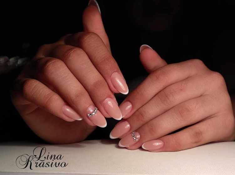 «голый» французский маникюр, при котором цвет придают только улыбке;