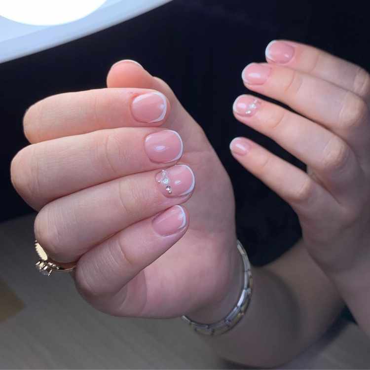 Френч изначально носил идею коротких ногтей. Он прост в исполнении и удобен в быту, риск сломать ноготь гораздо ниже, чем при длинных ногтях.