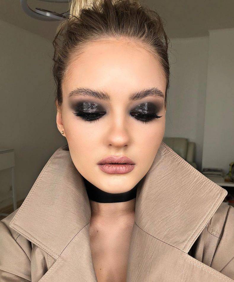 В макияже с черными тенями акцент получается на глазах, поэтому помаду выбирайте неяркую и нейтральных оттенков.