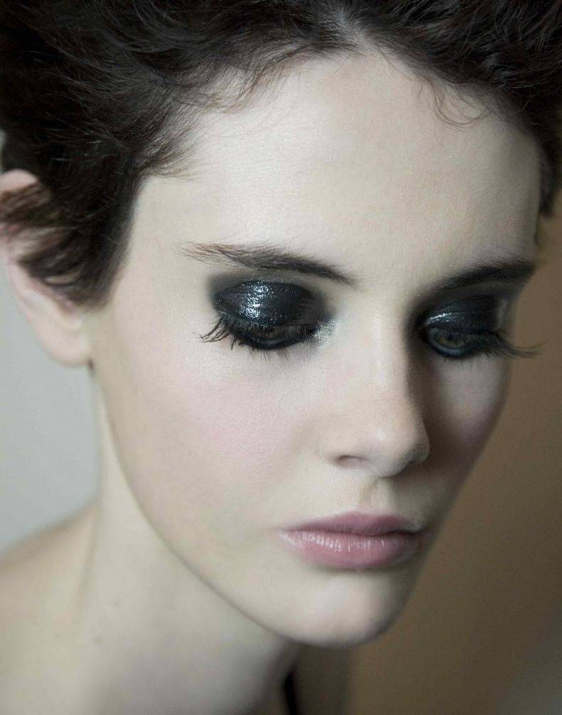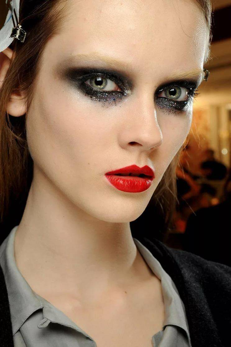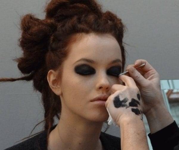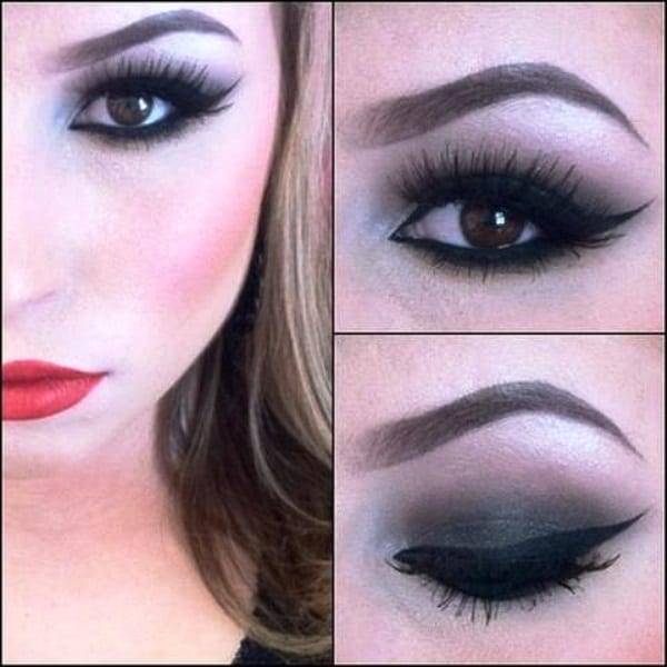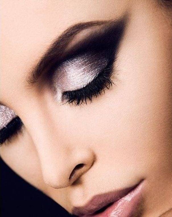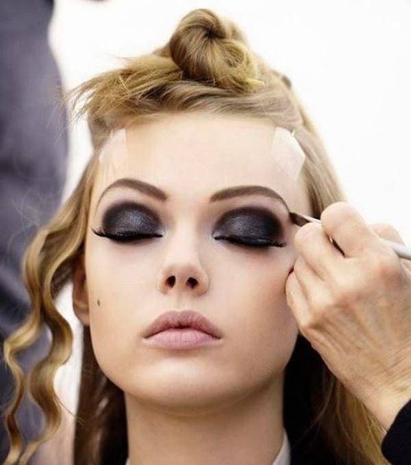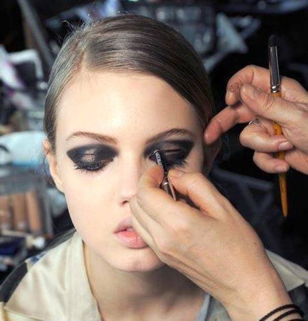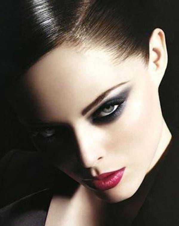 Перед тем, как делать такой макияж обязательно нужно привести в порядок кожу. Все мелкие морщинки, пятнышки и неровности нужно скрыть под тональным кремом и пудрой. Черные тени отлично смотрятся только в совокупности с идеальным тоном кожи.