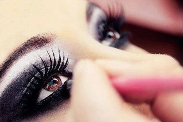 После того, как вы подготовили светлую основу, переходите к нанесению черных теней. Следите за тем, чтобы продукт не осыпался на кожу, ведь в этом случае вам будет трудно удалить его. В этом случае придется заново наносить тон.