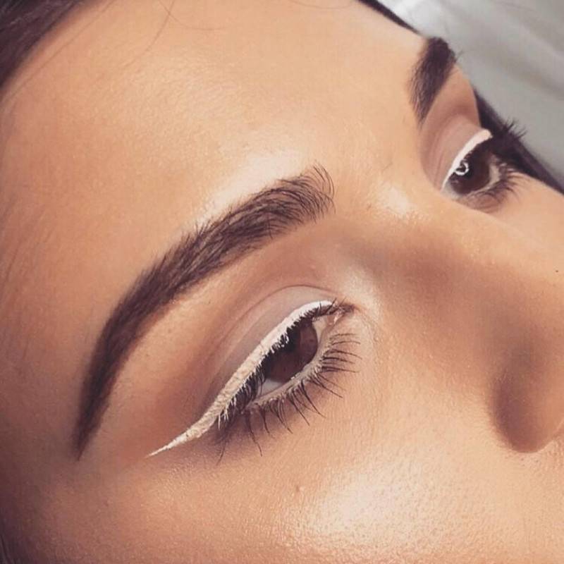 Тени белого цвета подходят всем. Особенно интересно смотрятся с голубыми или серыми глазами. Чисто белые тени подчёркивают чёрным цветом.
