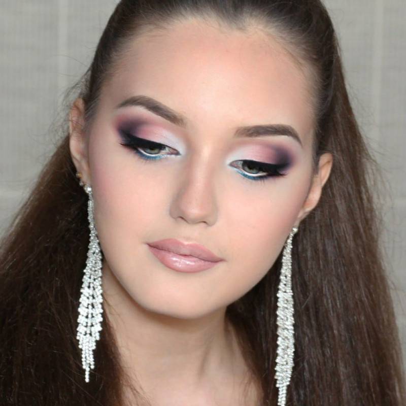 Дымчатый макияж, или смоки айз, по-прежнему актуален. Более того, его воплощение возможно не только при помощи теней черных оттенков. Сейчас в тренде дымчатый макияж, выполненный при помощи цветных теней. Основное правило – никаких четких линий, но для делается исключение, можно подвести стрелки подводкой черного цвета.
