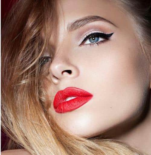 Если в вашем наряде присутствуют черный и красный цвета, то в макияже губ воспользуйтесь оттенками красного, идентичным с вашим платьем. Отдайте предпочтение «дымчатым» глазам, темно-серым теням и ярким, насыщенным оттенкам губной помады.