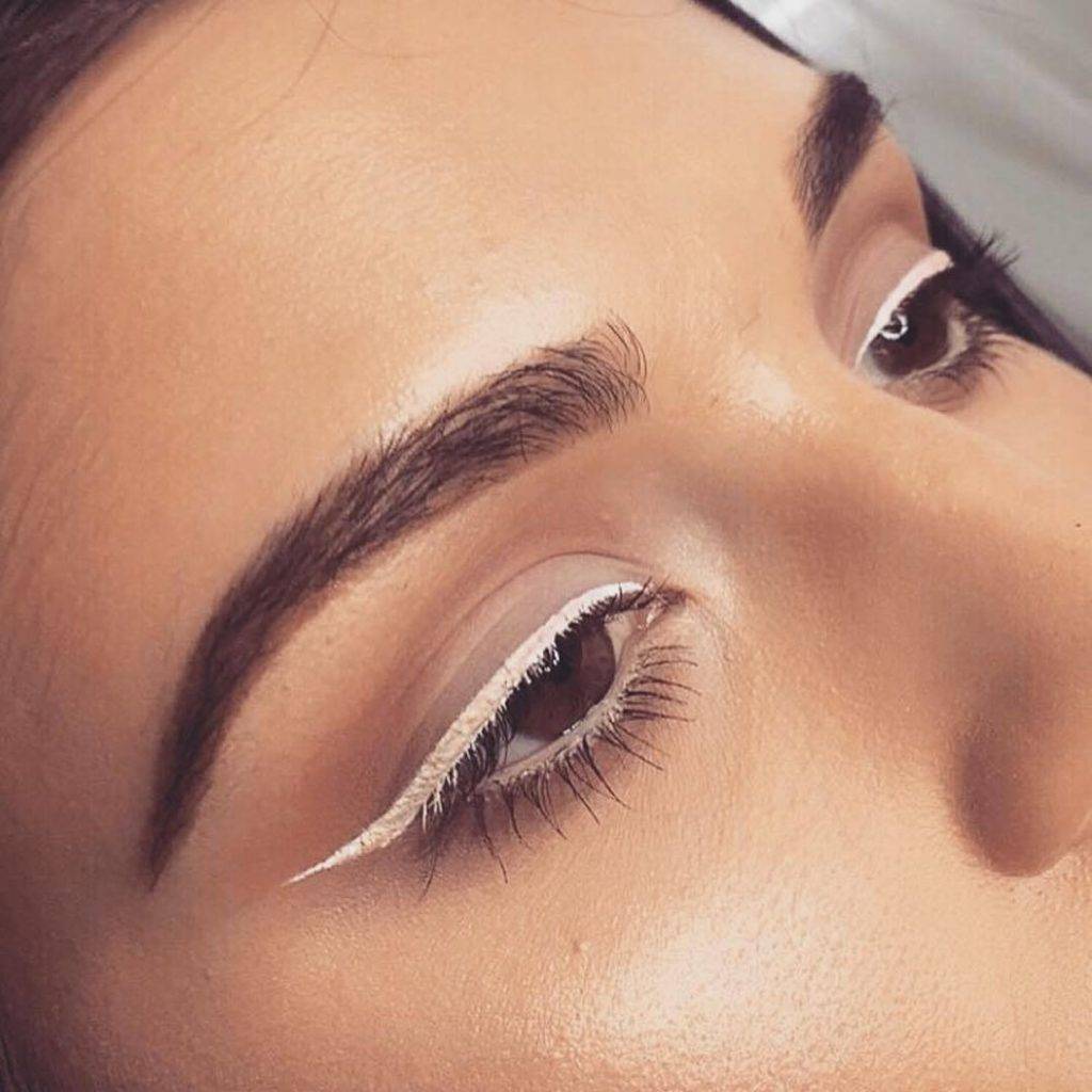 Тени белого цвета подходят всем. Особенно интересно смотрятся с голубыми или серыми глазами. Чисто белые тени подчёркивают чёрным цветом.