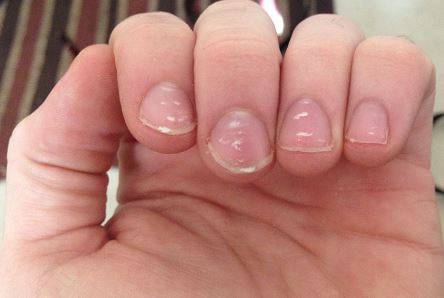 В последнем случае ногтевая пластина будет не только изогнутой вниз, но еще и ломкой или расслаивающейся.