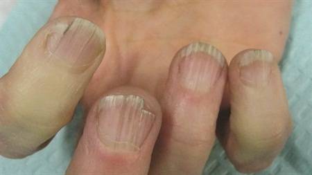 Изменение цвета ногтя могут быть вызваны язвой, колитом, гастритом и другими болезнями пищеварительной системы. После выздоровления ногти полностью обновляются, и полосы исчезают.
