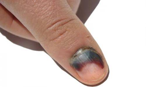 Из-за ушибов чаще всего проявляется частичная чернота на поверхности ногтя. Она локализуется в месте наибольшего повреждения.