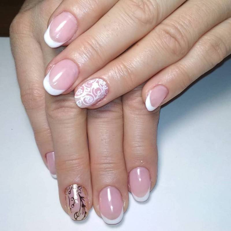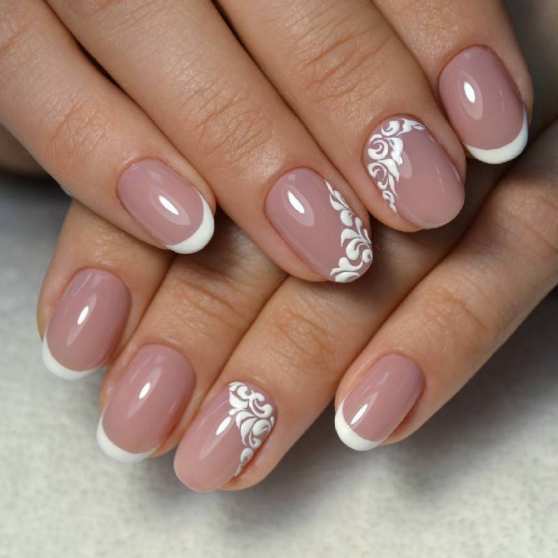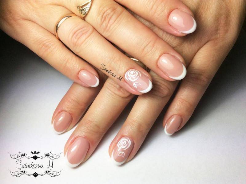 Дизайн классического френча достаточно прост, но, несмотря на это, он выглядит красиво. При его создании ногтевая пластина покрывается прозрачным, бледно-розовым или телесным оттенком лака. Именно это придает ему сдержанность и аккуратность. Кромка ногтя прокрашивается белым цветом. Классический вид французского маникюра актуален везде: на свидании, в университете, в офисе. Такой дизайн ногтей предпочитает большинство невест в день своего бракосочетания.