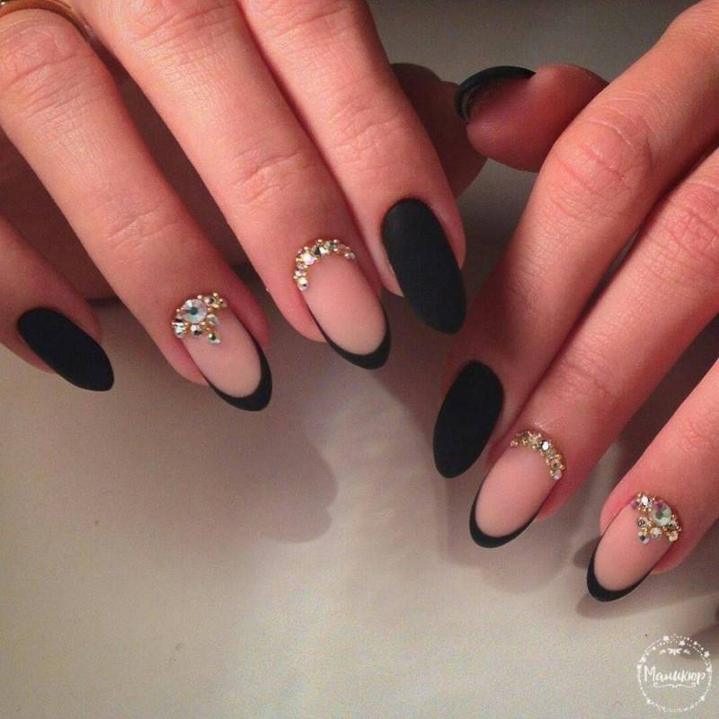 Обладательницам острых ногтей мы не станем советовать быть скромнее. Ведь скромницы не носят столь смелую форму. Как бы социум не относился к такой форме, никто не будет отрицать что черный цвет и острые ноготки просто созданы друг для друга. Черные ногти — это прекрасное поле для экспериментов. Пламенные рисунки, художественная роспись, камни, все это, на острой форме в черном цвете, просто завораживает.