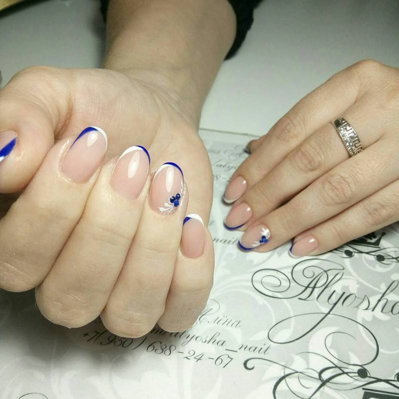 Рекомендуется выбирать дизайн с осторожностью, чтобы он не был вульгарным. Актуален обычный классический вариант френча с темной — глянцевой или матовой — каймой