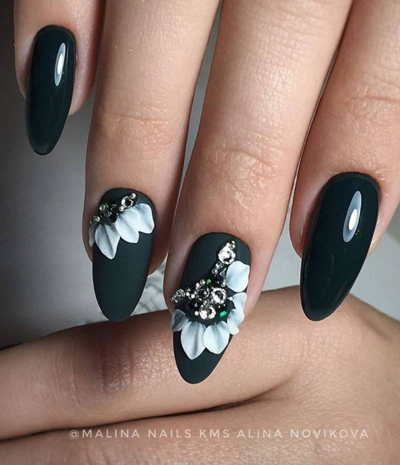 Чтобы на длинных ногтях черный цвет не выглядел вульгарно, важно правильно подобрать форму, и отнестись к этому с должным вниманием. Черный цвет акцентирует недостатки ногтевой пластины