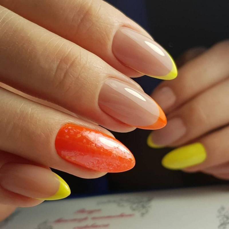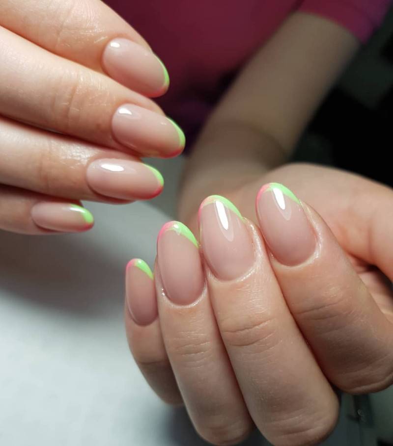 Совет! Еще одна модная и необычная фишка: вы можете окрасить в контрастной гамме торцы ноготков. Выбирайте цвета, которые находятся на пике популярности и дерзайте. Особенно такой дизайн актуален летом.