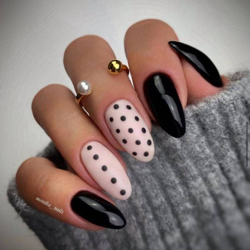 Контрастные нейл-арты всегда выглядят шикарно и завораживающе. Сложно представить себе более противоположные оттенки, чем глубокий черный и нежный белый, почти молочный цвет.