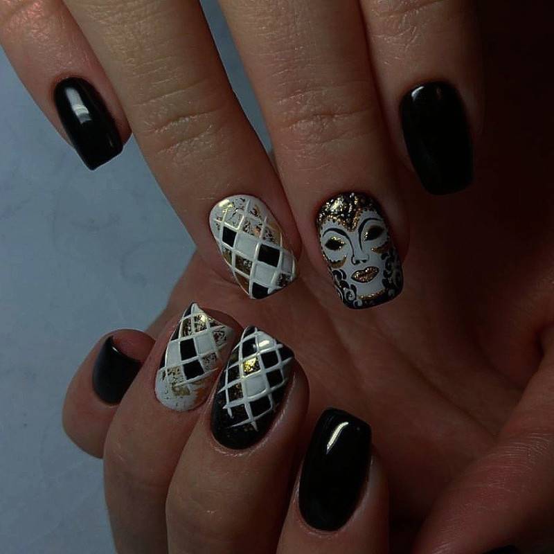 Черный маникюр с золотом 2018 фото модные идеи варианты