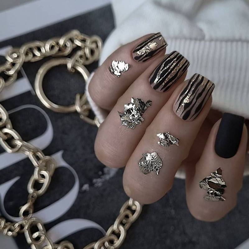 Хотите оставаться на волне новых тенденций, тогда обратите внимание на черный маникюр с золотом, наиболее популярный в текущем сезоне