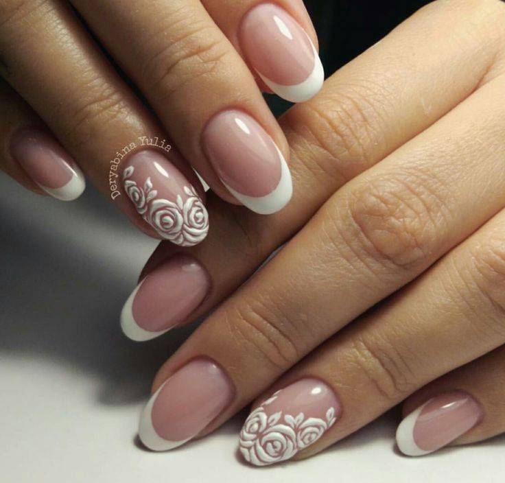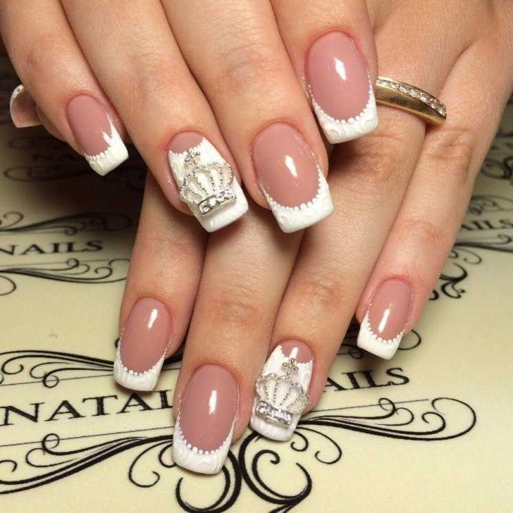 Дизайн классического френча достаточно прост, но, несмотря на это, он выглядит красиво. При его создании ногтевая пластина покрывается прозрачным, бледно-розовым или телесным оттенком лака. Именно это придает ему сдержанность и аккуратность. Кромка ногтя прокрашивается белым цветом. Классический вид французского маникюра актуален везде: на свидании, в университете, в офисе. Такой дизайн ногтей предпочитает большинство невест в день своего бракосочетания.