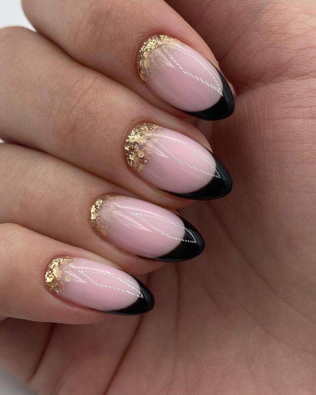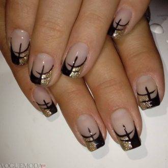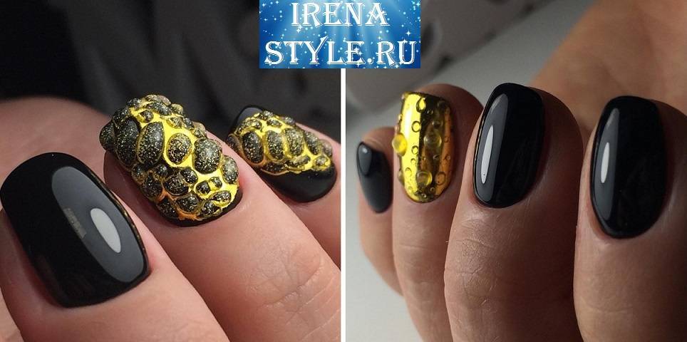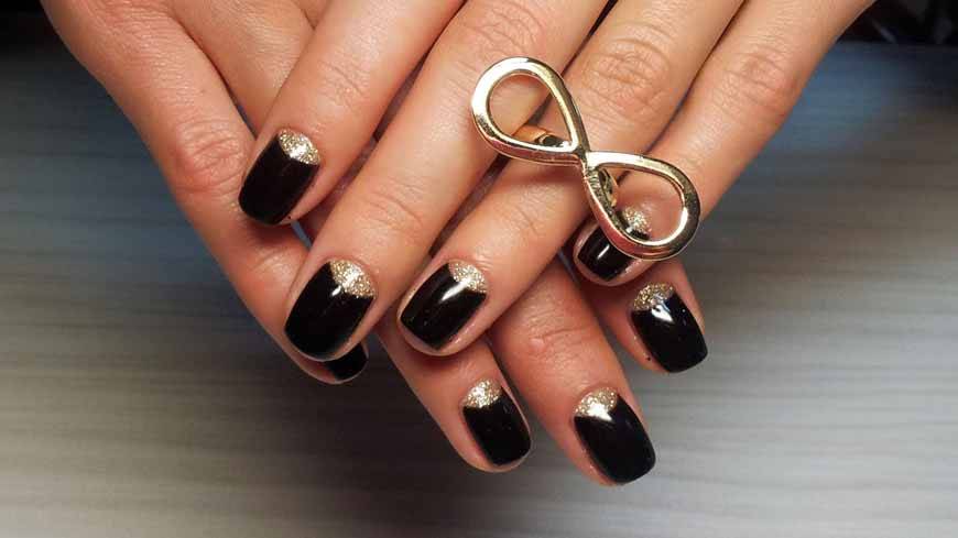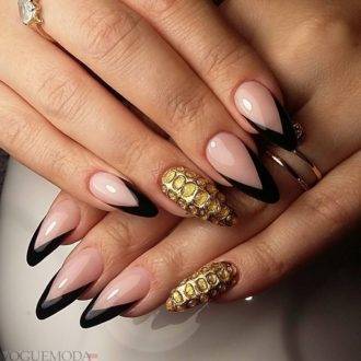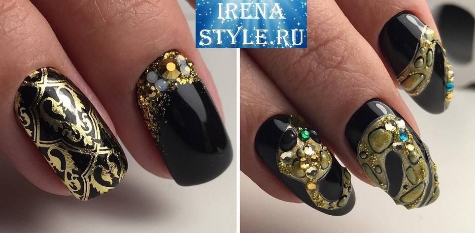 Черный маникюр с золотом 2018 фото модные идеи варианты