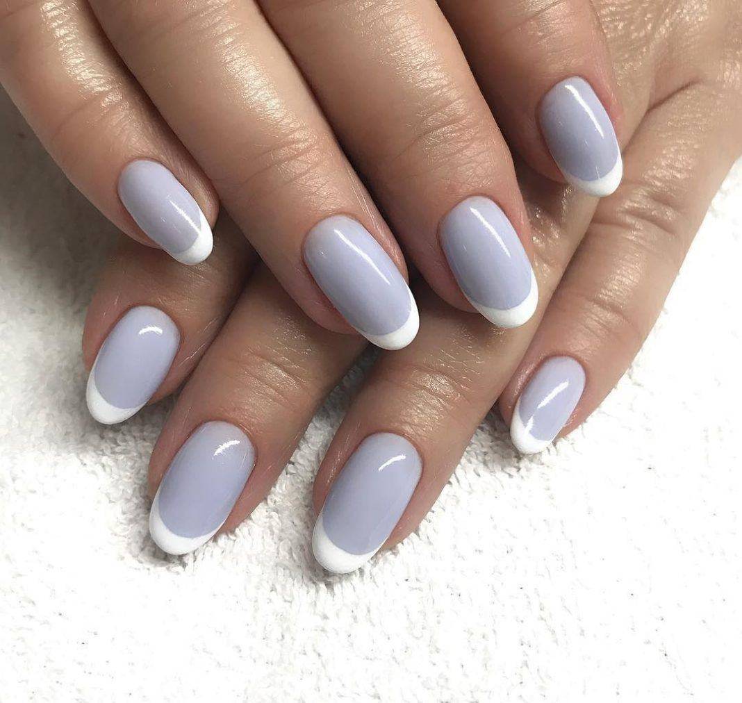 Чаще всего для этого полумесяца выбирают светлые цвета (белый, бежевый, розовый и т.д.), а вот основную часть ногтя окрашивают в насыщенный цвет (отлично подойдет темно синий, бордо или черный).