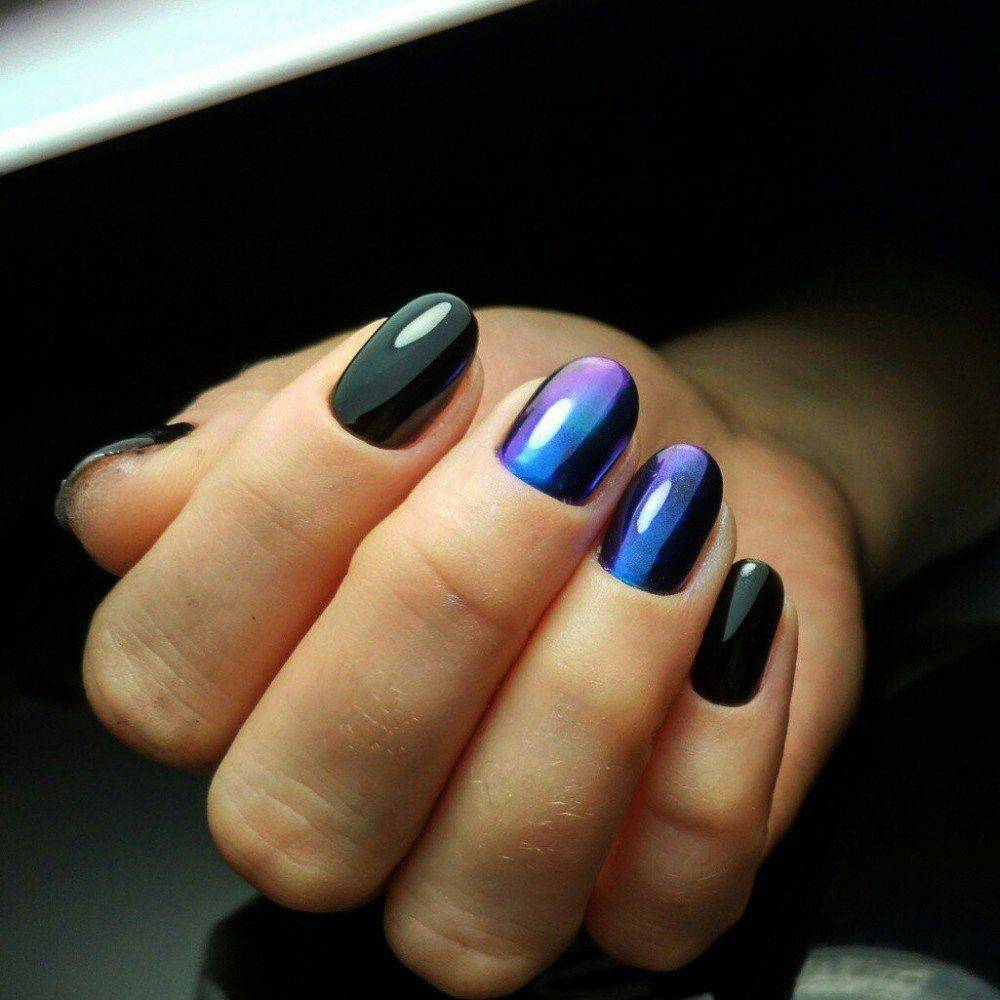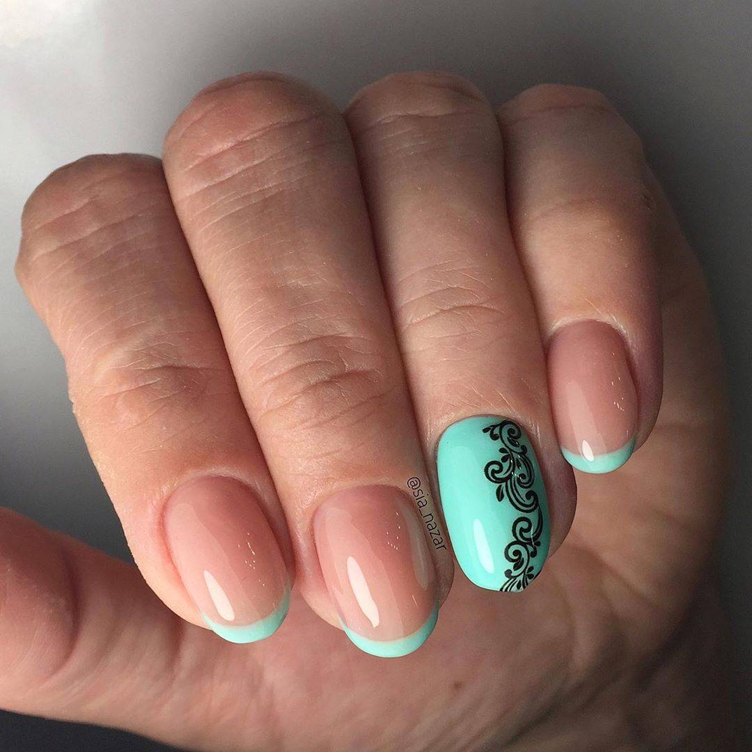 Если вы решите добавить в черный маникюр оттенок из синей палитры, выбирайте светлые тона. Иначе ваш дизайн будет слишком мрачным