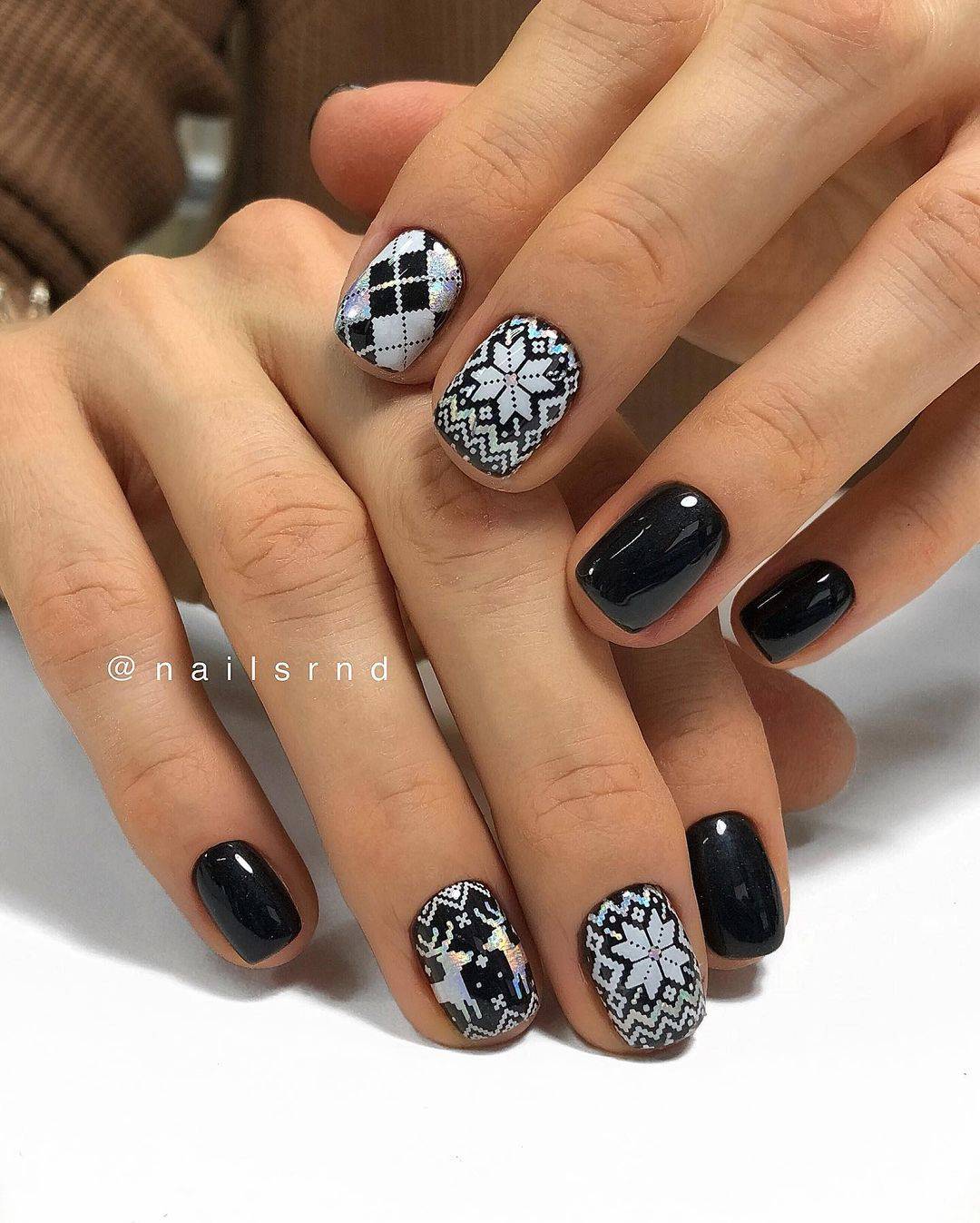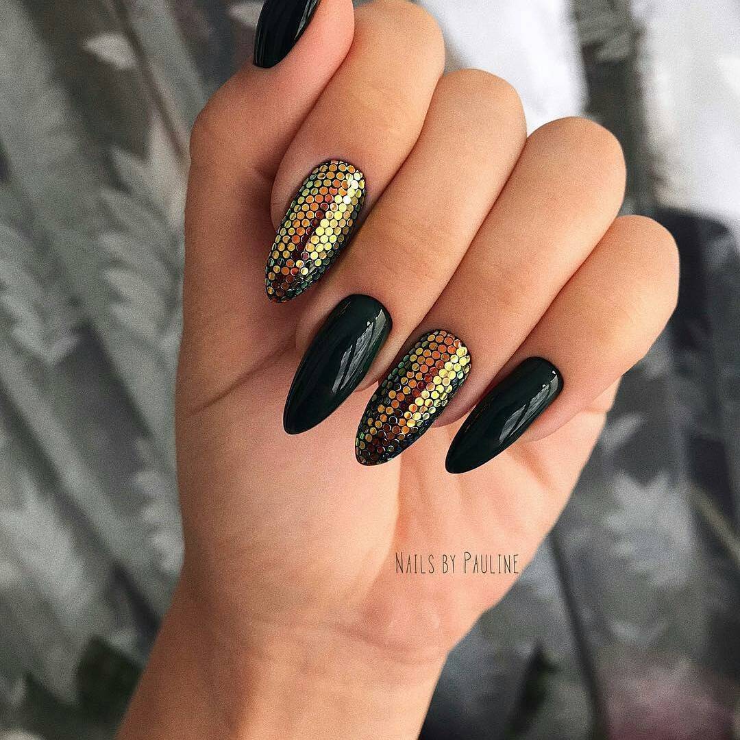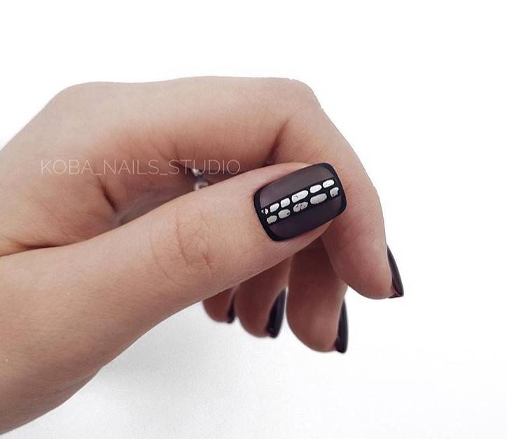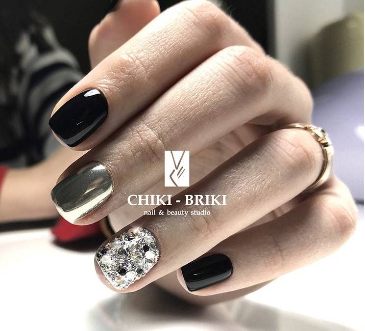 Учитывая моду на минимализм, самым актуальным будет однотон на коротких квадратных ногтях и миндале. Тем не менее дизайны в сочетании с черным цветом просто сногсшибательны, и мы вынуждены сделать исключение, и поддаться этим манящим рисункам и блестяшкам.