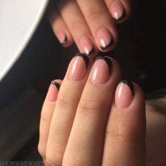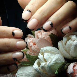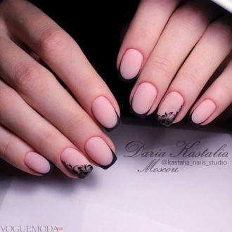 Рекомендуется выбирать дизайн с осторожностью, чтобы он не был вульгарным. Актуален обычный классический вариант френча с темной — глянцевой или матовой — каймой