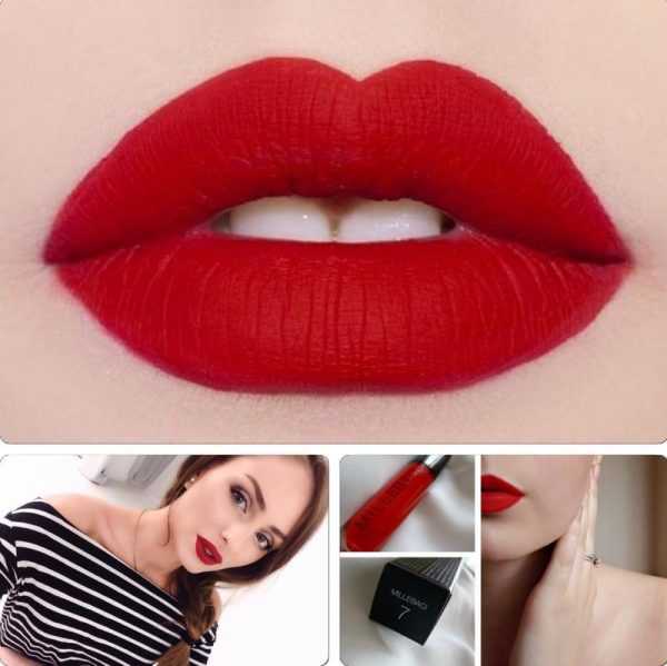 Но можно и матовые текстуры пустить в ход, все-таки они самые стойкие. Чтобы помада « не съела » объем губ, в качестве подложки сначала нанесите бальзам для губ, потом помаду, а поверх на центр нанесите прозрачный блеск.
