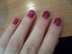 Два слоя просохли, так же быстро. Марии «испытуемый», ну очень понравился и цветом, и текстурой, да и тем, как он наносился. В общем, вердикт был однозначным: лак просто прелесть. Я отдаю предпочтение, более ярким лакам, но и мне он пришелся по душе. Хотя, могу сказать, что подобный оттенок действительно лучше использовать тем, кто любит темные лаки. Но очевидные плюсы у них точно есть: они прекрасно смотрятся на ногтях любой длины и с их помощью легко создать нарядный маникюр, сочетав с практически любым цветом.