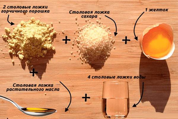 Две столовые ложки порошка горчицы разведите в двух столовых ложках тёплой воды. Добавьте взбитый яичный желток, несколько столовых ложек любого натурального растительного масла
