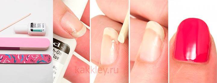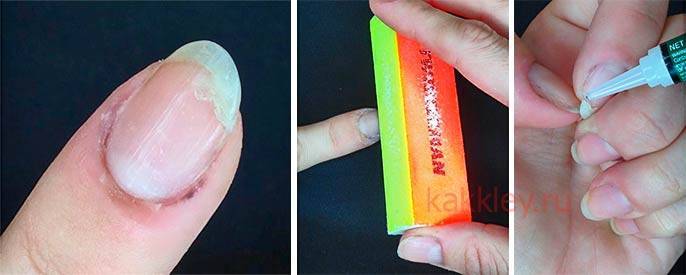 Ни в коем случае нельзя использовать для ремонта ногтя клеи типа «Момент» или «Суперклей» — они не предназначены для контакта с кожей и могут нанести серьезный вред здоровью.