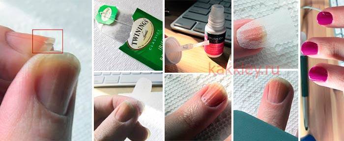 Этот способ заклеить треснутый ноготь – самый простой и доступный хотя бы потому, что чайный пакетик наверняка найдется в каждом доме. Он имеет весьма цепкие свойства, при этом полупрозрачный и тонкий.